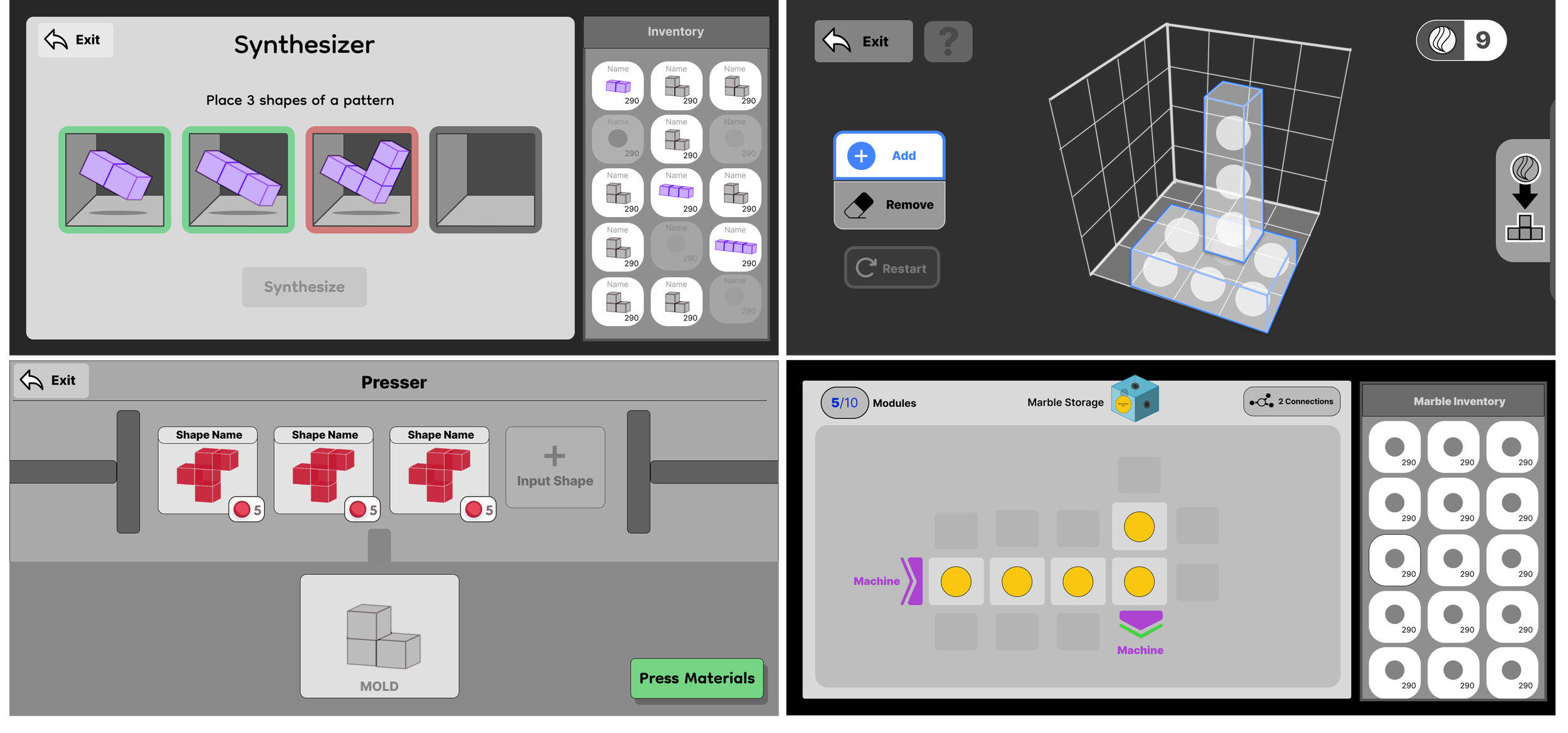I designed a wide range of in-game tools and machines that transform materials and unlock new possibilities. These systems were also used to introduce mathematical concepts in playful, hands-on ways, blending learning with experimentation and creative play.